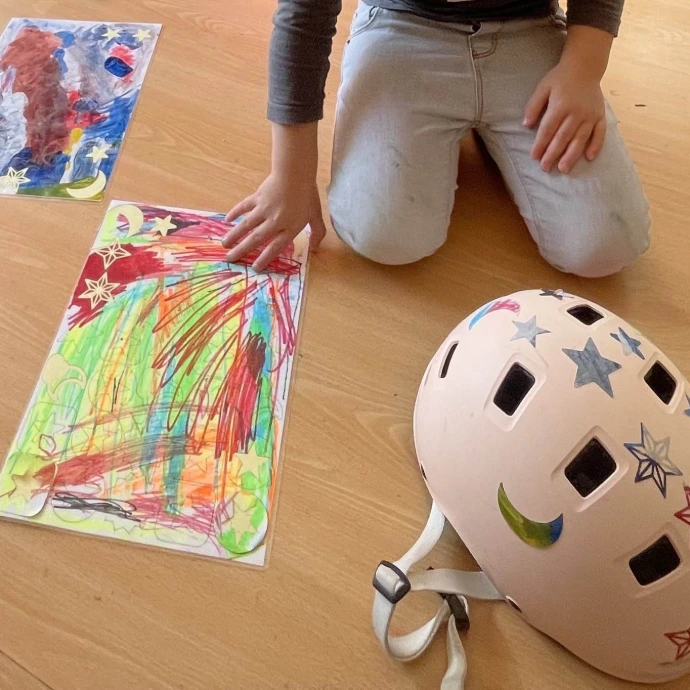 Viens peindre, plastifier et découper des motifs à la découpeuse laser sur tes dessins pour les transformer en de magnifiques autocollants (dès 3 ans, accompagné).